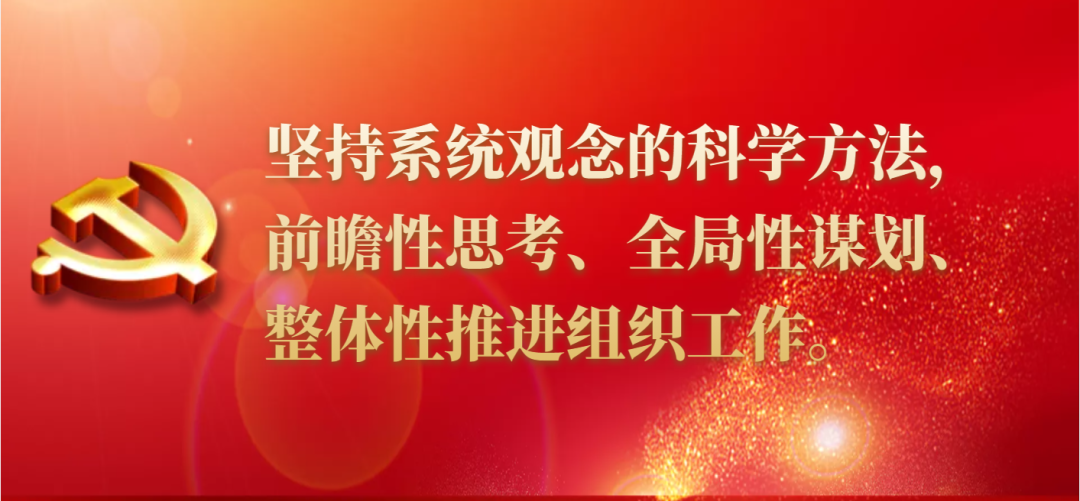 坚持系统观念的科学方法,前瞻性思考、全局性谋划、整体性推进组织工作。组织工作是一项系统工程,只有强化系统观念,加强统筹协调,才能做到有章法、有力度、有效果。注重增强工作的前瞻性,紧紧围绕现代化建设需要,推进干部选育管用全链条、周期性、系统化重塑,确保干部队伍始终适应时代发展要求;根据未来社区、未来乡村生产生活方式转变,探索建立数字化党建应用场景,提升基层治理科学化精细化水平;洞察世界格局变化、科技发展大势,及时调整人才工作策略,努力实现人才队伍规模、结构、质量、安全相统一。注重增强工作的整体性,组织工作可分为基层党建、干部工作、公务员管理和人才工作等方面,每个领域既独立成章、又相互依托,具有很强的内在关联性、耦合性,哪个工作没做好,都会影响整体效果。这就要求既系统推进各领域工作,又要具体抓好各环节工作,防止畸轻畸重、顾此失彼。注重增强工作的协同性,出台政策注重相互衔接,力量摆布注重统筹兼顾,同时充分考虑和正确把握各种外部关联和内部关联,既带头干好,又善于牵头抓总,加强上下联动、内外协调,形成齐心协力、充满活力的组织工作生动局面。