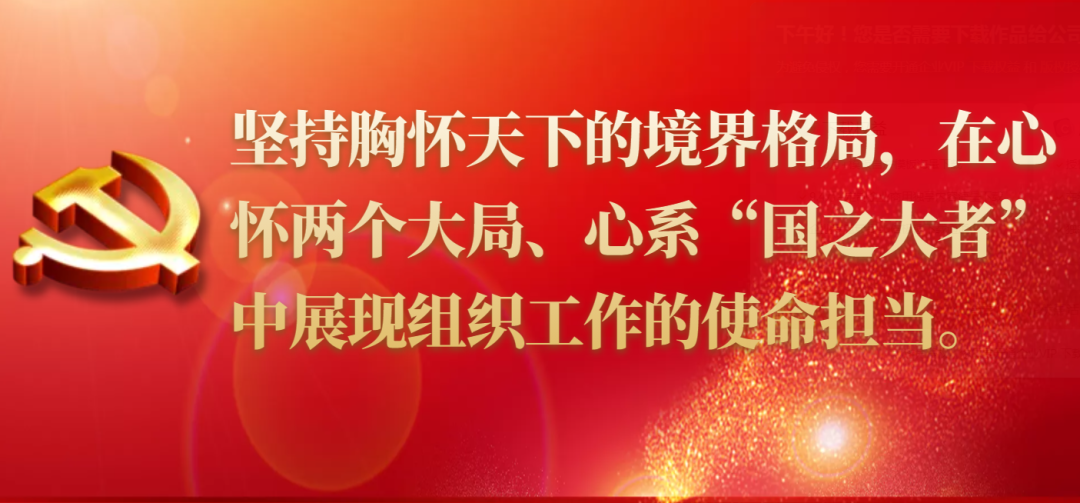 坚持胸怀天下的境界格局,在心怀两个大局、心系“国之大者”中展现组织工作的使命担当。组织工作历来与党的事业、党的使命紧密相连。党的二十大鲜明提出新时代新征程中国共产党的使命任务,这是一项伟大而艰巨的任务,前途光明、任重道远,尤其需要提高政治站位,强化政治担当,自觉把组织工作放到大局下去审视、去思考,主动融入实现党的伟大使命任务和奋斗目标之中。牢牢把握正确政治方向,时刻关注党中央关心什么、强调什么,深刻领会什么是党和国家最重要的利益、什么是最 需要坚定维护的立场,坚定不移按照习近平总书记为福建指引的方向前进,集中精力抓好党的建设和组织工作。始终围绕中心服务大局,坚决落实习近平总书记对福建提出的“四个更大”重要要求,以更开阔的眼界五湖四海选贤任能,以更开放的格局放眼全球集聚英才,以更开拓的思维统筹资源夯基固本,不断提高组织路线服务政治路线的精准性有效性。巩固团结奋斗生动局面,从强化思想政治引领、树立鲜明用人导向、关心关爱干部等方面打出“组合拳”,全力锻造政治过硬、敢闯敢干、爱拼敢赢的新时代“斗争型”干部,教育引导各级领导班子和党员干部始终保持团结的状态、奋进的姿态,踔厉奋发、勇毅前行,用新的伟大奋斗创造新的伟业。