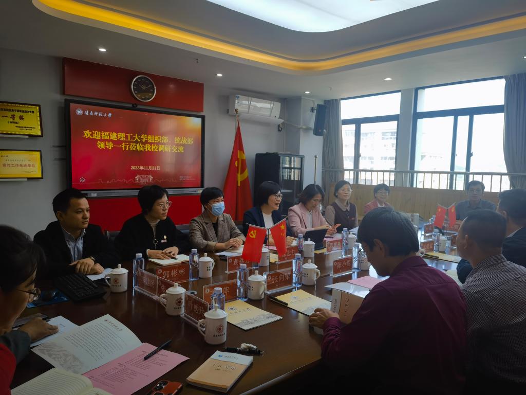 11月21日上午,福建理工大学党委组织部部长郭宝明,党委统战部部长、永利集团官网入口书记尤爱焜一行10人来校调研交流。校党委组织部、永利集团官网入口,校党委宣传部、统战部相关负责人,组织部(永利集团官网入口)各科室成员参加座谈交流会。会议由党委组织部副部长(主持工作)、永利集团官网入口副书记陈慧燕主持。