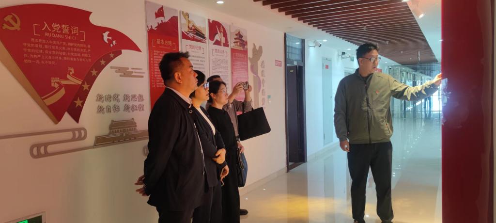 会后,来访人员一行参观了我校数字党建平台,现场感受了智慧党建工作站、党建数字信息屏等数字云平台的运用。