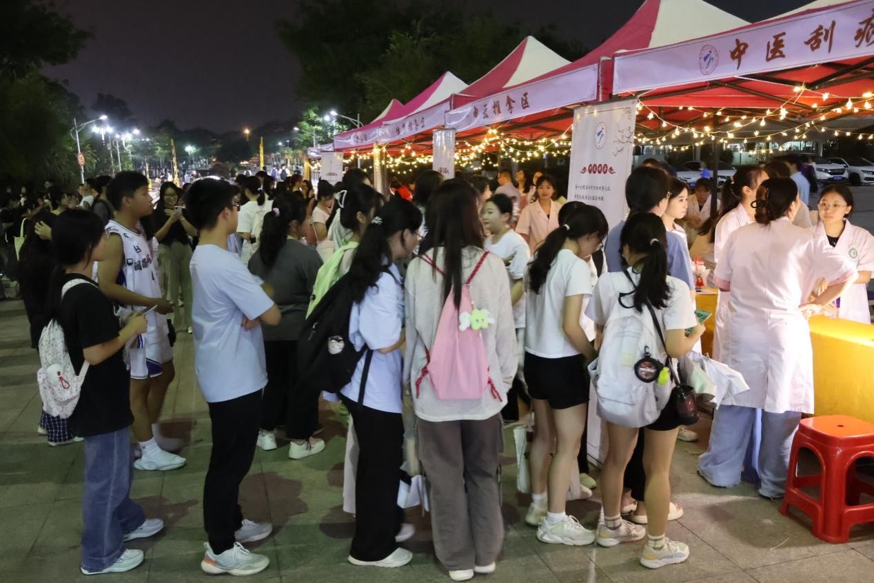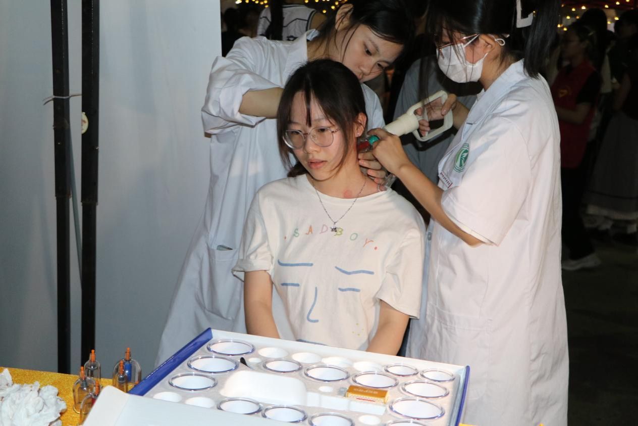 此次中医夜市共设有筋膜敲击区、拔罐运动区、中医手诊区、中医推拿区、中医刮痧区、体质检测区、健康指导区、耳穴体验区、中药香囊区、中药奶茶区十大特色摊位,为体验者提供量身定制的体质辨识服务,传授科学健康知识,帮助体验者树立正确的健康观念,引领健康生活方式。夜市丰富有趣,吸引众多师生前来体验并近距离观看传统中医治疗方法的操作过程,感受中医文化的独特魅力。