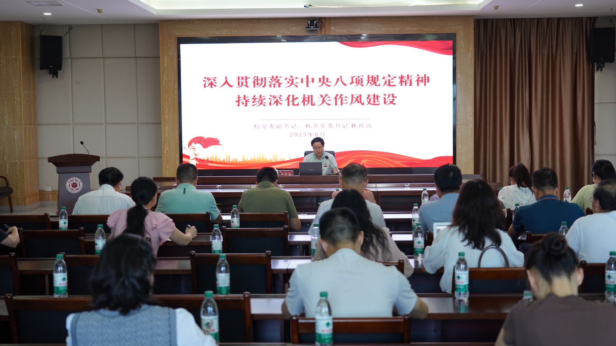 6月26日,校党委副书记、永利集团官网入口书记林致远以《深入贯彻落实中央八项规定精神 持续深化机关作风建设》为题,在科技信息楼1607会议室讲授党课。党课由校党委组织部部长、永利集团官网入口副书记赵丽霞主持。
