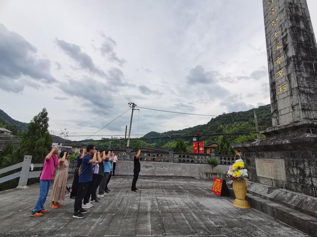 全体党员来到革命烈士纪念碑前,列队肃立默哀,瞻仰烈士丰碑,以无言寄托哀思,深切缅怀革命先烈的不朽功绩,铭记他们的壮举,并重温入党誓词,庄严宣誓。