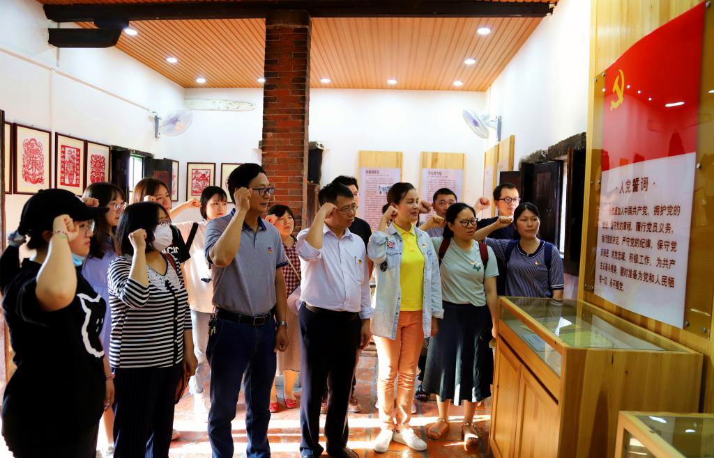 杨强老师详细讲解了漳州地方革命斗争史、漳属最早地方党组织的建立与活动情况、白水侨乡红侨战士革命斗争史、继鳌堂红侨文化档案解读以及继鳌堂地方党史人物斗争精神等。党员们跟随杨强老师的脚步,认真参观陈列的一幅幅珍贵的老照片、一份份饱含历史的入党志愿书、一封封地下往来的重要信件、一个个历经沧桑的革命文物,听着杨强老师娓娓道来一个又一个感人肺腑的红色故事,感受老一辈无产阶级革命家当年开展革命工作的艰难困苦,以及进步华侨的爱国情怀。参观结束后,党员们重温了入党誓词。