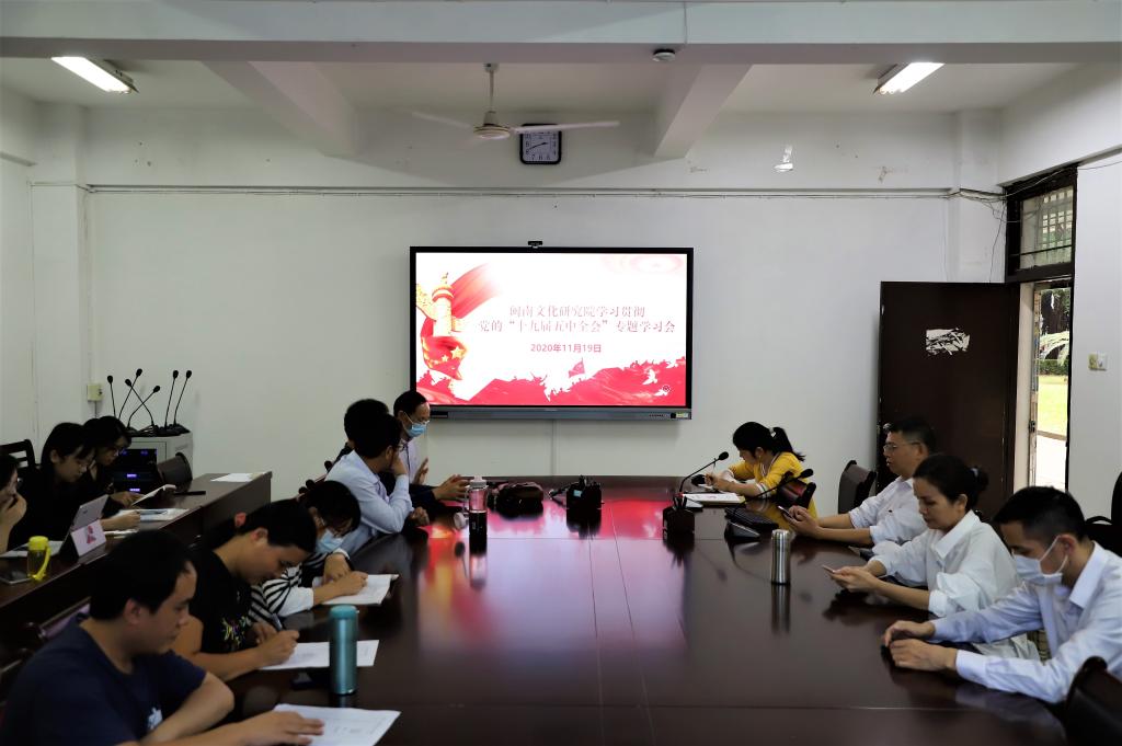 2020年11月19日下午,闽南文化研究院于综合楼中区109召开专题学习会,传达学习党的十九届五中全会精神。闽南文化研究院全体师生出席会议,会议由副院长刘云主持。