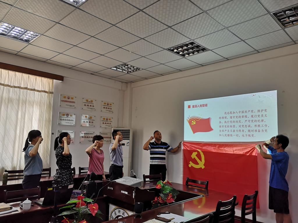 随后,支部书记蔡斌带领支部成员重温入党誓词。全体党员在鲜红的党旗前庄严宣誓,进一步激发党员干部立足岗位、积极奉献的工作热情。