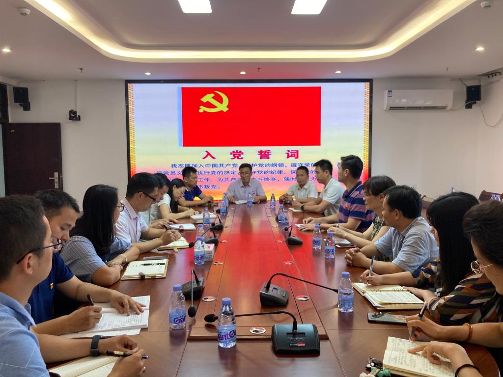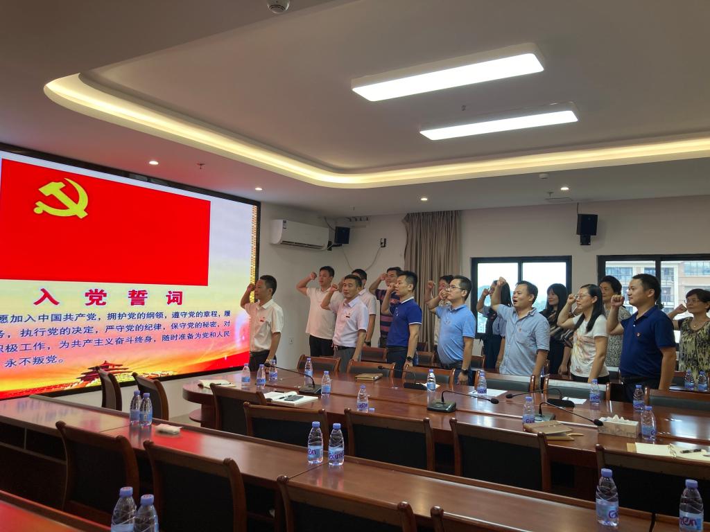 “我志愿加入中国共产党,拥护党的纲领,遵守党的章程……”支部全体党员在鲜红的党旗下,重温入党誓词,再一次接受心灵洗礼和党性教育,进一步感悟初心使命。
