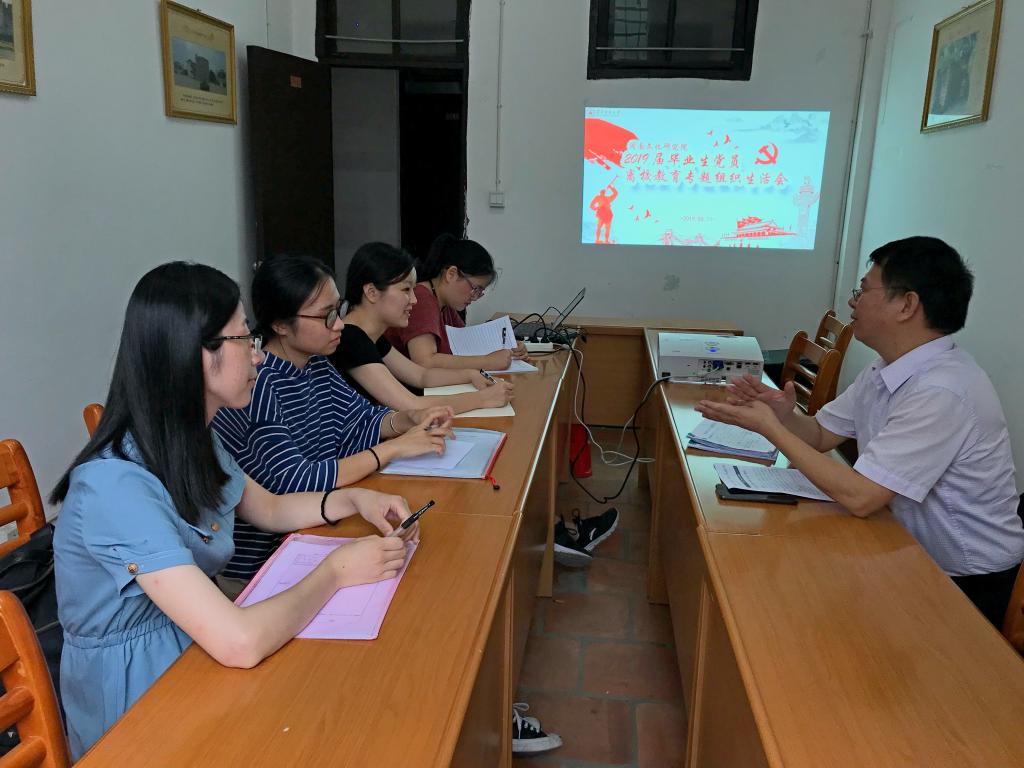 6月11日上午,闽南文化研究院党支部在9号楼212召开了2019届毕业生党员离校教育专题组织生活会,会议由党支部书记刘云主持。会议传达了学校党委有关毕业生离校工作会议精神和工作要求,引导毕业生党员树牢“四个意识”,坚定“四个自信”,坚决做到“两个维护”,不忘初心、牢记使命,践行“四讲四有”,争做合格党员。此次组织生活会传递了组织和老师们对青年学子们的殷切希望,对毕业生党员党性观念的强化,党纪律性的提升,党内政治生活准则的严肃起到了重要的作用。