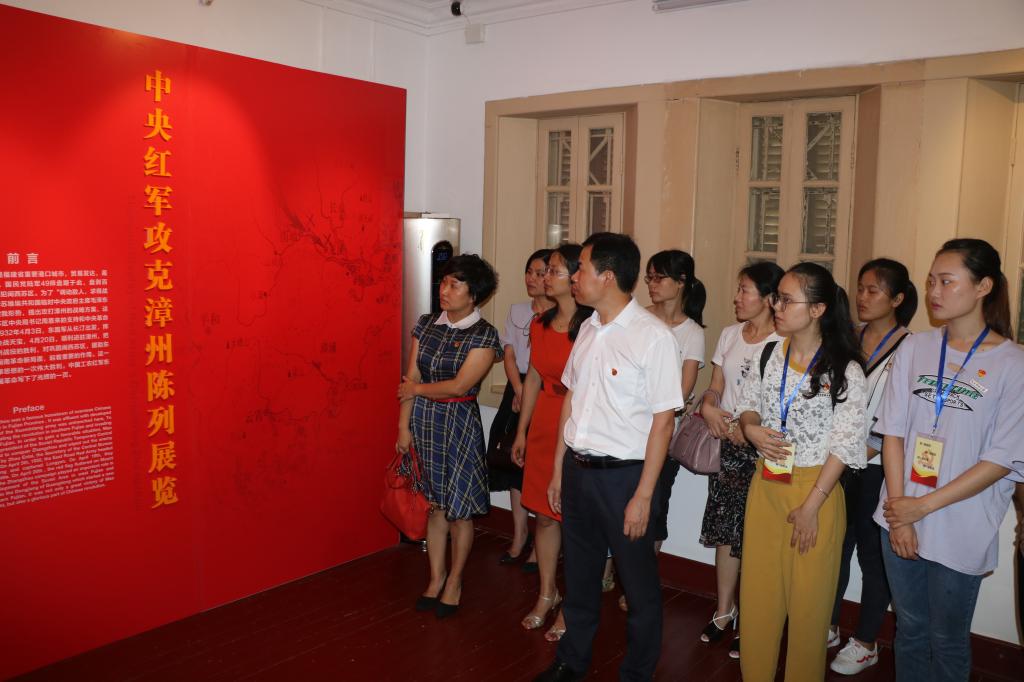 在建党97周年之际,为深入学习贯彻党的十九大精神,弘扬革命优良传统,增强“四个自信”,坚定“四个意识”,7月2日下午,宣传部党支部全体党员、“四有”青年教师卓越班和“青年铁军”卓越班学员代表前往毛主席率领红军攻克漳州纪念馆参观学习。校党委副书记钟发亮以普通党员身份参加支部开展的主题党日活动。
