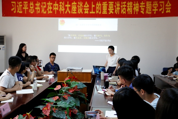 为推进“两学一做”教育学习活动,6月5日下午,由校团委组织召开的“学习习近平总书记在中科大座谈会上的重要讲话精神专题学习会”在达理活动中心三楼团委会议室顺利举行。校团委负责老师、校团委学生组织主要学生干部参加了此次会议。