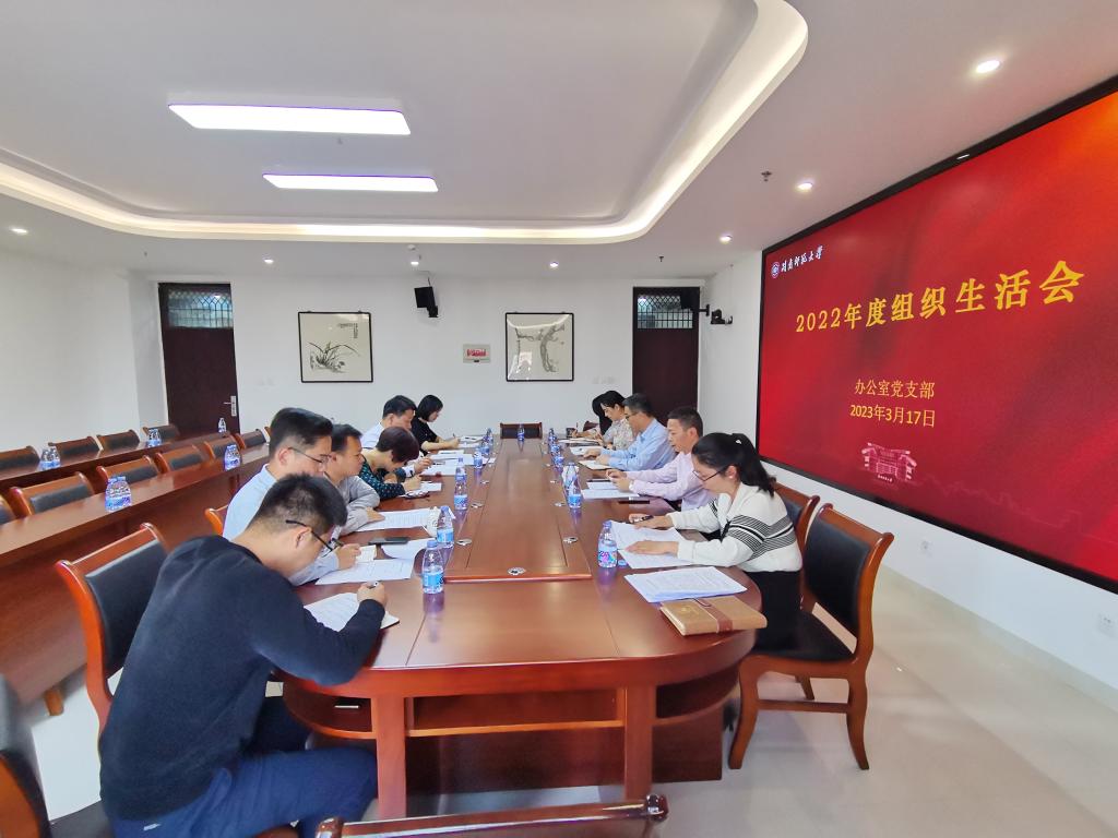 近日,办公室党支部召开2022年度组织生活会。校党委书记吴彬镪同志以党员身份参加,同党支部党员谈心交流,勉励大家坚持以习近平新时代中国特色社会主义思想为指导,深入学习贯彻党的二十大精神,自觉践行“五个坚持”,认真做好“三服务”工作,为学校“双一流”建设作出积极贡献。