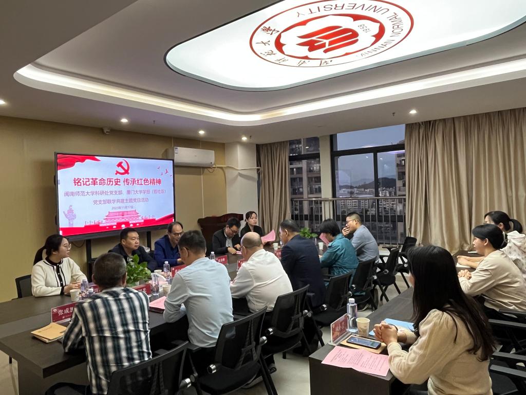 为深化巩固习近平新时代中国特色社会主义思想主题教育成果,11月17日下午,科研处党支部与厦门大学学报(哲社版)党支部开展“铭记革命历史 传承红色精神”联学共建主题党日活动。