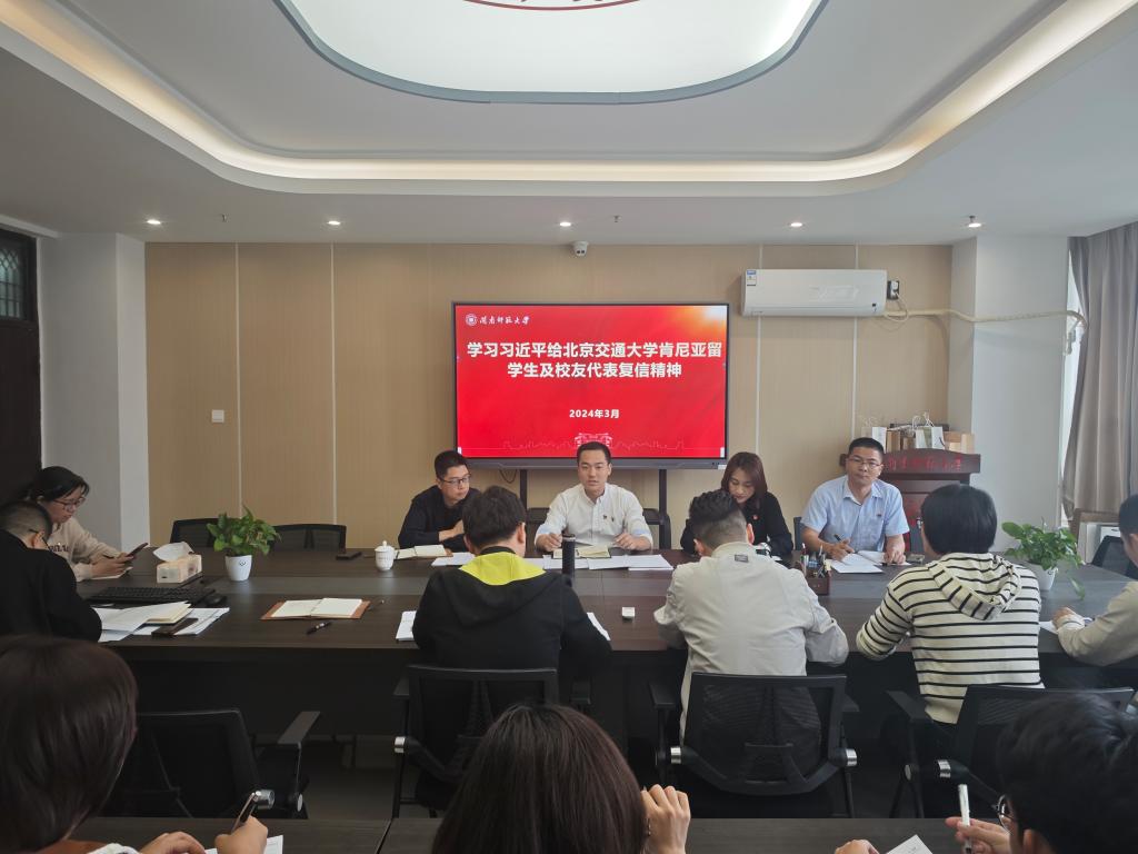 3月27日,学生处党支部在科技信息楼北1209召开专题学习会,学习习近平给北京交通大学肯尼亚学生及校友代表复信精神和习近平考察湖南第一师范学院重要讲话精神。