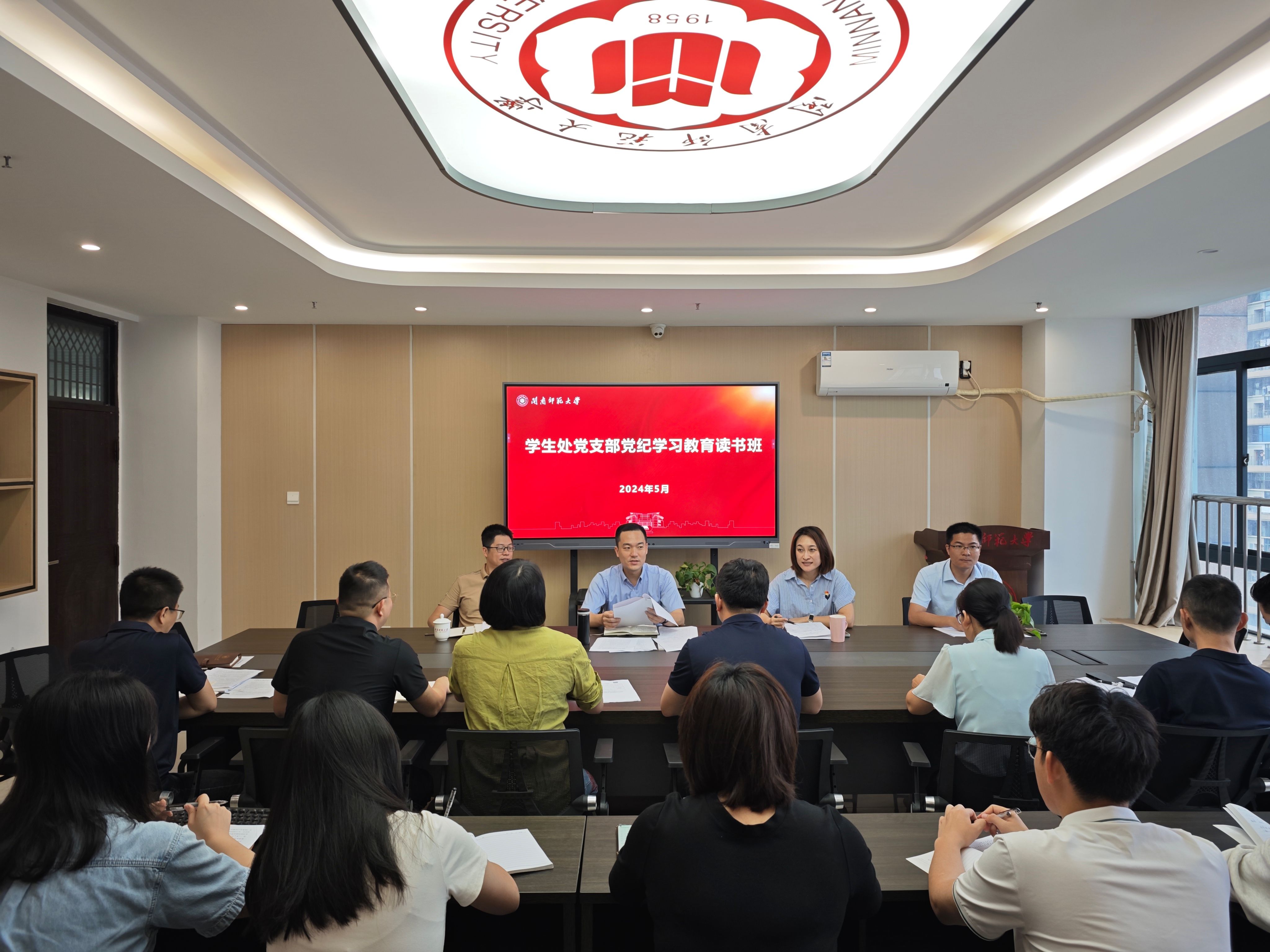 5月14日,学生处党支部党纪学习教育读书班开班式在科技信息楼北1209举行。支部全体党员参加活动。
