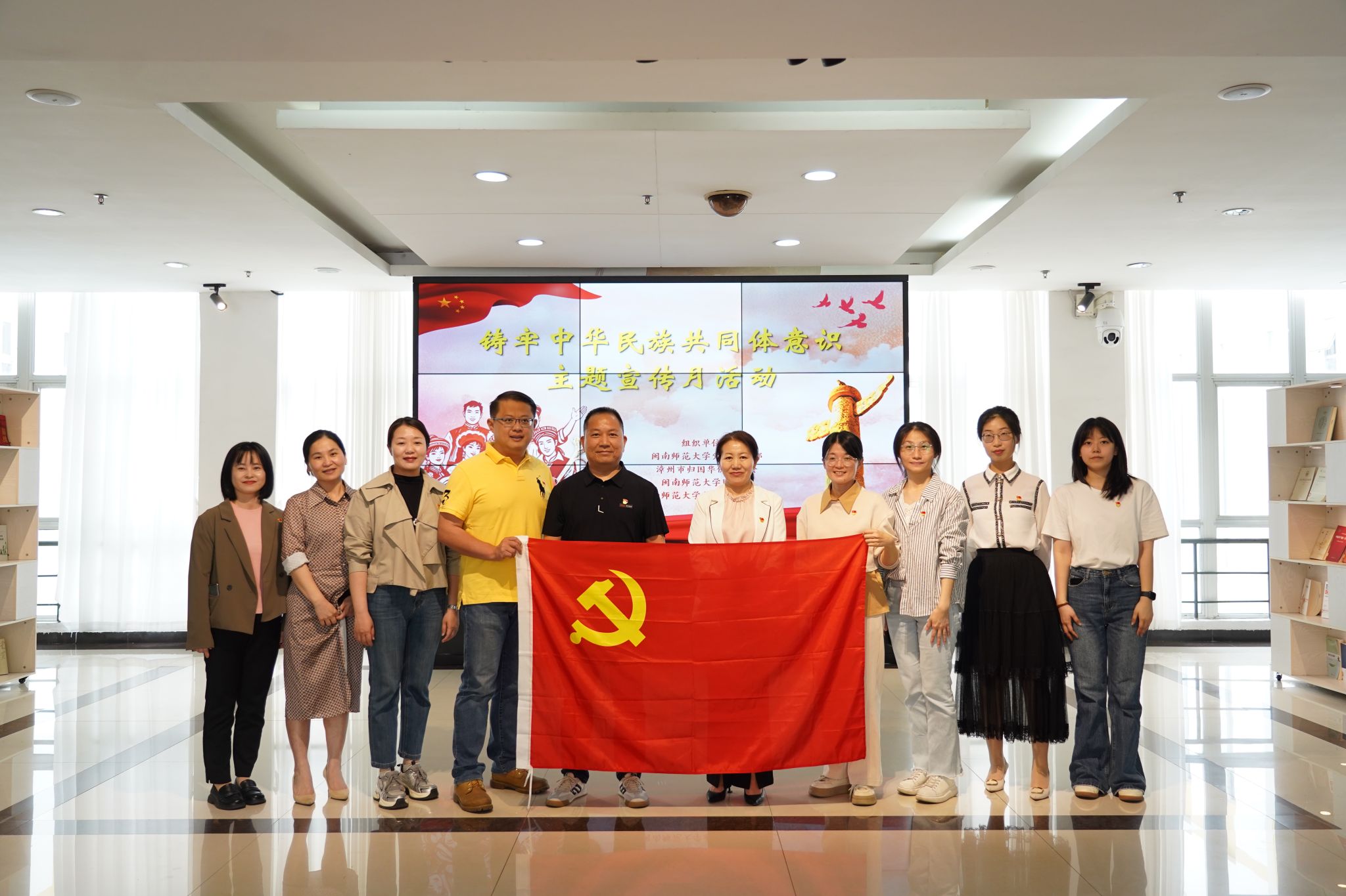 全体党员现场学习了习近平总书记在中共中央政治局第九次集体学习时的重要讲话精神,参观了“同心共绘民族卷”海报设计大赛获奖作品展和“铸牢中华民族共同体意识”主题书展,聆听了历史地理学院郑榕教授讲授的《铸牢中华民族共同体意识的历史维度阐释》专题讲座。此外,党员们还参加了民族知识线上知识竞赛。